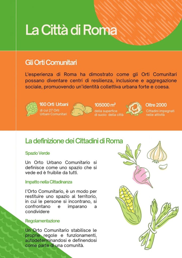 Il progetto, selezionato tra 24 vincitori su 43 città partecipanti, prevede il trasferimento delle attività sviluppate tra il 2014 e il 2016 nei Municipi II, IV e IX di Roma. In queste aree, sono stati creati spazi verdi su terreni incolti, abbandonati o confiscati alla mafia, dove soggetti fragili, associazioni e cittadini collaborano nella gestione degli orti.